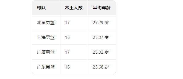 欧冠实时比分-本赛季CBA四大豪强球队平均年龄对比
